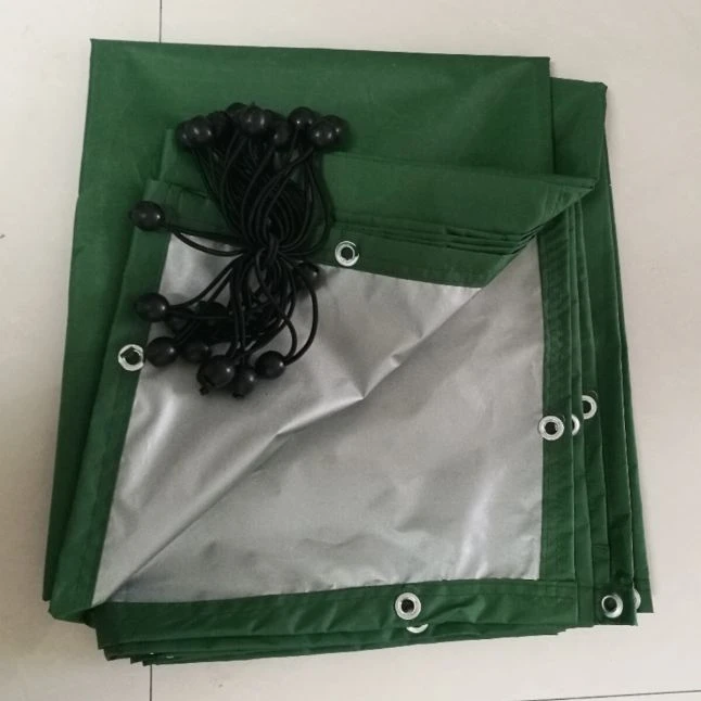 De couleur verte à l’exterieur et grise à l’interieur, cette bâche permettra de garder l’espace protégé au frais et au sec.