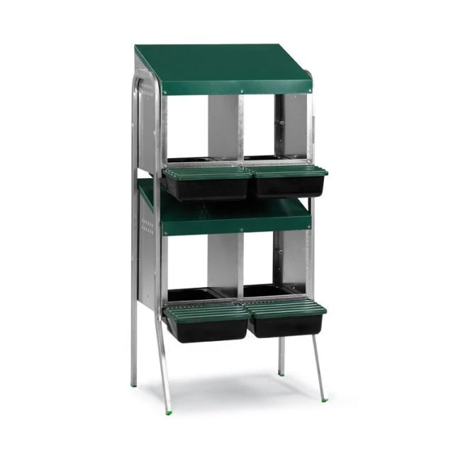 Pieds robustes et métal galvanisé offrent à la structure une très bonne tenue et une excellente durabilité. Cet abri de qualité sera idéal pour recevoir vos pondeuses, dans ses cellules couvertes avec une toiture peinte en verte.