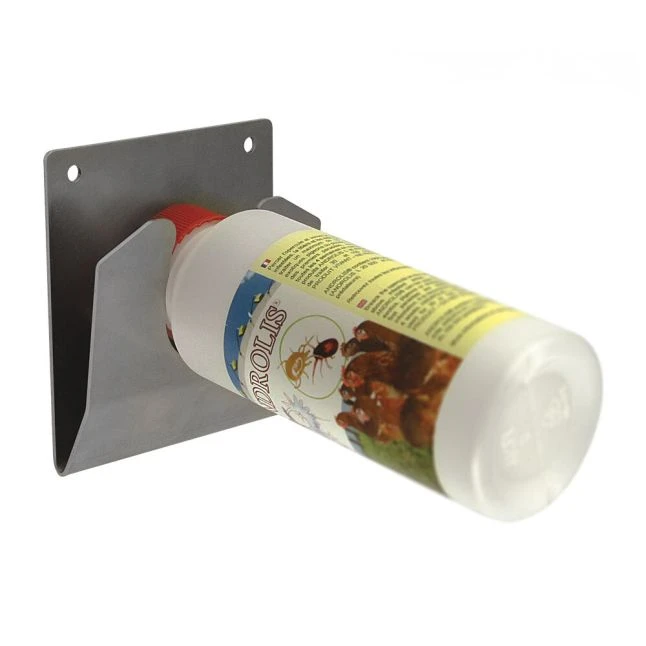 La plaque, fabriquée en acier inoxydable, se fixe solidement sur une des parois intérieure du poulailler grâce aux deux trous prévus pour recevoir des vis. Disposez-la à hauteur de poule.