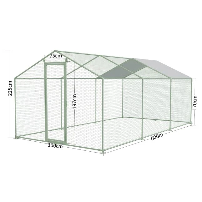 Trois solutions existent, le filet, le grillage et le parc grillagé, la troisième étant la plus sécurisée. Ce modèle de 6 mètres de long sur 3 mètres de large et 18 m² de surface au sol offrira à vos volailles un grand espace de liberté.