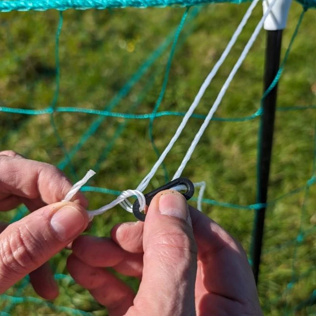 Un filet bien tendu grâce aux piquets, sardines et tendeurs