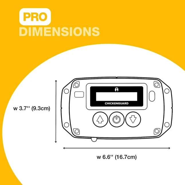 Le ChickenGuard version Pro, équipé de toutes les options, fonctionnera soit avec une minuterie, soit avec un capteur de luminosité. Le moteur s’actionnera ainsi en fonction de la course du soleil dans le ciel.