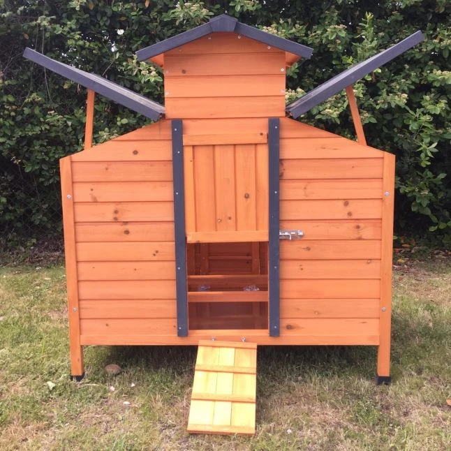 La double pente de l’ensemble de ces toits est spécialement étudiée pour que l’eau ne s’infiltre pas dans les boiseries de l’abri de vos poules.