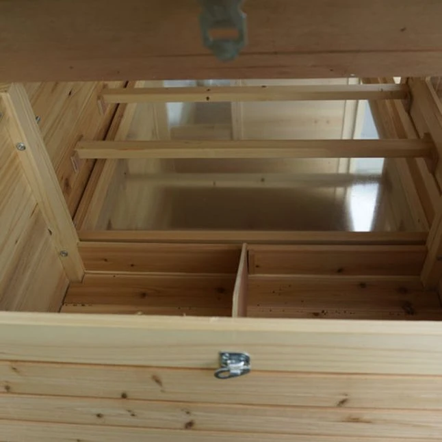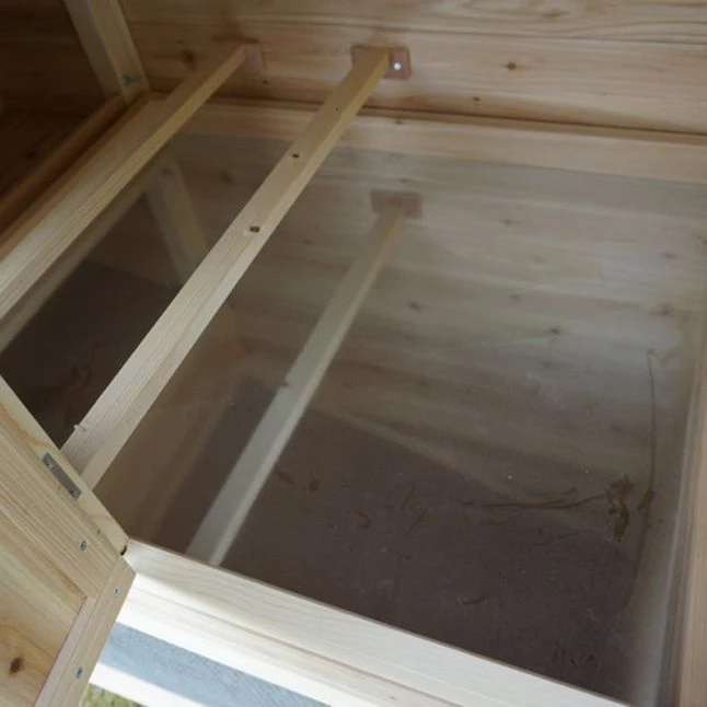 Ses panneaux en pin traité font entre 10 et 12 mm d’épaisseur, ce qui est important et assure à vos volailles une bonne protection contre le froid et les intempéries. Ces panneaux sont fixés sur des montants robustes de 25 x 30 mm.