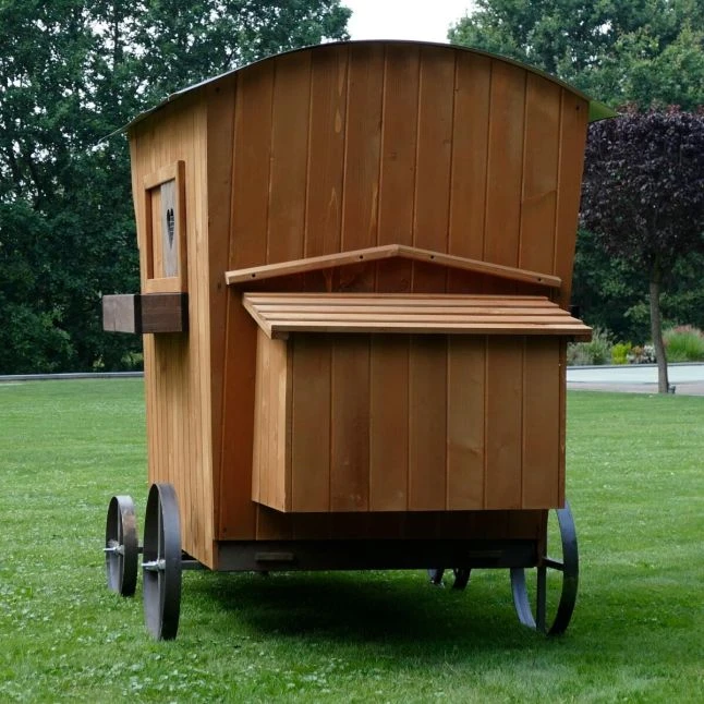 Cette petite roulotte conçue en Europe a été pensée spécialement pour accueillir vos oiseaux de basse-cour. Les matériaux sont solides, il s’agit de bois épais provenant de forêts européennes et de parties en métal résistantes.