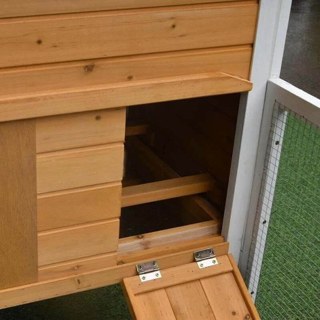 Le parc possède un grillage en métal galvanisé résistant à la corrosion tout comme le tiroir à déjections qui sera très apprécié pour un entretien facilité.
