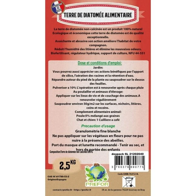 Découvrez la terre de diatomée alimentaire de Prefor, produit 100% naturel qui pourra être utilisé de nombreuses manières différentes avec vos volatiles. Alliée des éleveurs, cette poudre riche en Oligo éléments possède également des propriétés asséchantes.
